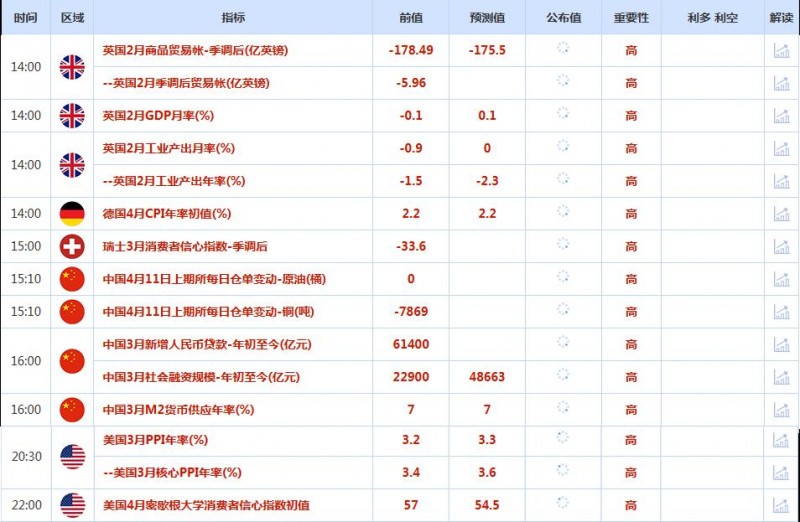 美元指数下跌1%以上,使得黄金对持有其他货币的投资者来说价格降低。 周四的数据显示,美国3月消费者物价意外下降,但通胀风险偏向上行。