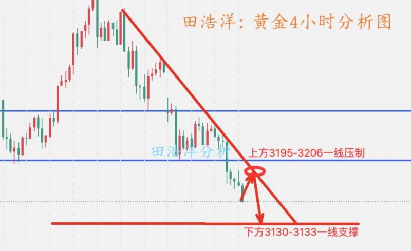 昨日黄金技术面在亚欧盘反复震荡压制于3250下方迎来向下回落破位,午后欧盘加速向下击穿3200关口并延续下行至3175关口附近企稳反抽,晚间美盘在度承压3198下方二次回落破底收盘,日K线报收压制回落破底中阴,整体金价在高位遇阻3500点整数关口后出现日线级别向下回落破位,短线失守3200关口彻底打开下行回落空间,昨天早间我们也是给了3245-50一线做空的策略,回踩完美获利出局,目前黄金处于小幅震荡,虽然不适合进场,但是我们只要坚定把握住大方向趋势看空,其余的交给耐心了,上方短期继续关注3190-95一线压制,重点关注3205-3210一线重要压制,操作上以反弹做空为主,做一个稳健的交易者。