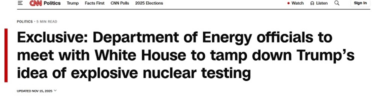 FX168财经报社(亚太)讯 美国有线电视新闻网(CNN)周六(11月15日)发布独家报道称,消息人士表示,特朗普政府的高级能源和核官员计划在未来几天与白宫及国家安全委员会会面,以劝阻美国总统特朗普(Donald Trump)恢复美国核武器试验。