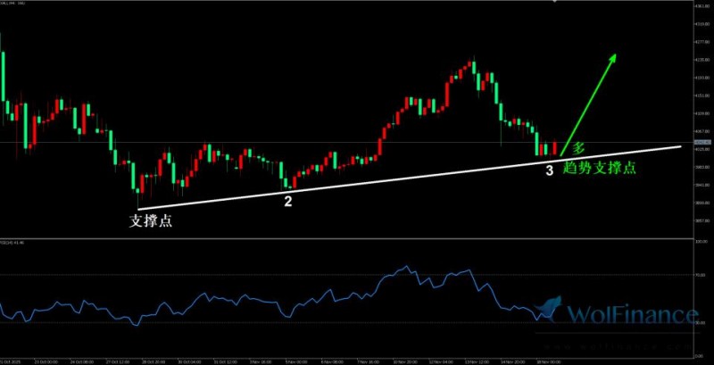 周二(11月18日)金价美盘前低位支撑上涨,关注回落后进多观点,美债收益率延续近期回落态势,10年期美债收益率最新报4.110%,日内跌幅0.68%;美元指数在99.60附近窄幅震荡;现货黄金微涨0.06%。表面看三者同步微涨,但内在驱动不同:美债收益率的回落反映市场对美联储12月降息预期的重新升温,美元指数因收益率跌幅尚未完全击穿关键支撑而暂获喘息,黄金则在债市避险情绪主导下维持高位震荡。未来2-3个交易日,债市收益率走势仍是主导美元与黄金短线方向的核心。美债收益率:短期下行通道确立,关注4.074%-4.160%区间突破