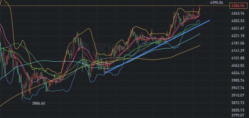 黄金价格持续创下历史新高,逼近4400美元这一关键关口!突破 4386 美元的阻力位后,目标价位为 4396 美元至 4400 美元,然后是 4412 美元。