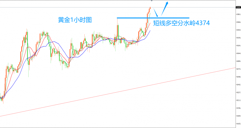 短线,日内关注回踩4370——4375附近的二次多机会,早盘直接破高,欧盘一旦回撤,还有二次冲高的机会,所以短线依托上周五高点附近顶底转换位置做日内多,拉高之后择高离场,这个位置,只能短线去参与。波段,仍然要谨防近期出现大幅回撤,一旦再次回撤至4300下方,中线波段和择低分批入场。