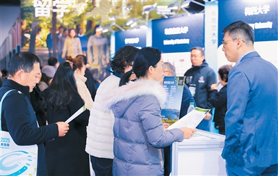 在日前举办的中国国际教育展上,家长向海外院校、机构咨询。