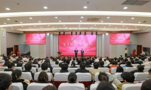 在山东省荣成市人民法院民事审判庭,学生沉浸式体验“模拟法庭”。