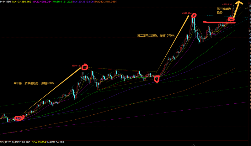 第一,从黄金2025整个一年走势来看,总共进行了三次单边趋势拉升,第一次从年初2600左右启动,单边涨至3500,涨幅900米;第二次从3311启动,单边涨至4381,涨幅1070米;第三次启动点若从4000一线来算,涨幅按前两次比例,至少平均1000米,那么可以试探5000; 若从4172启动点来算,就是5100上;不管如何,后市至少可以冲击5000美元及上方;