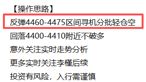 反弹4460-4475区间寻机分批轻仓空