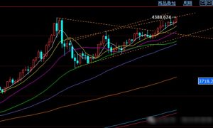 短线,日内关注回踩4370——4375附近的二次多机会,早盘直接破高,欧盘一旦回撤,还有二次冲高的机会,所以短线依托上周五高点附近顶底转换位置做日内多,拉高之后择高离场,这个位置,只能短线去参与。波段,仍然要谨防近期出现大幅回撤,一旦再次回撤至4300下方,中线波段和择低分批入场。
