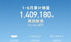 汽车资讯 7月1日,吉利汽车控股有限公司(0175.HK)公布6月销量数据:乘用车销量236036辆,同比增长42%,已连续10个月销量突破20万辆,今年1~6月,集团累计销量达1409180辆,同比增长47%。基于上半年强劲销售表现,吉利汽车决定将原定全年销量目标上调约11%,由271万辆增至300万辆,根据最新销量目标,吉利汽车年度销量目标达成率已达47%。