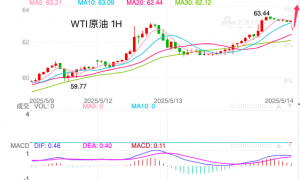 由于中美达成90天协议,将关税大幅降低115%,提振了油价需求前景,油价攀升至63.00美元附近。