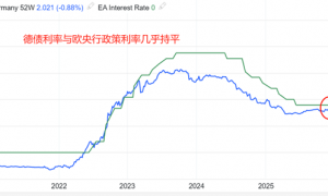 欧央行三大关键政策利率分别为再融资利率、边际贷款利率和存款机制利率,当前利率水平分别为2.15%、2.4%、2%。德国一年期国债收益率为2.03%,基本与存款机制利率持平,意味着债券市场相对存在市场并未存在溢价,这也是欧央行将维持利率不变的特征之一。