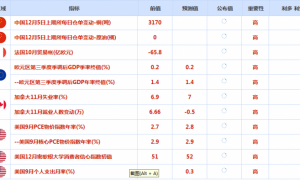今日需要关注的数据有,欧元区10月零售销售月率、美国11月挑战者企业裁员人数、美国截至11月29日当周初请失业金人数和加拿大9月贸易帐。