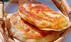 用料:面粉300克、沸水90克、凉水90、椒盐(或者五香粉)1勺、食用油2勺手抓饼的做法步骤