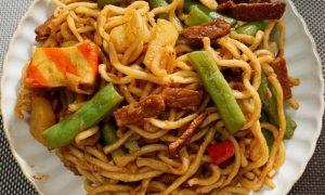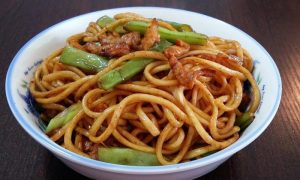 用料:豆角300克、猪肉200克、面条三人份、葱,姜,蒜各适量、植物油、酱油,盐,鸡精