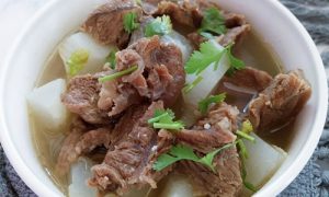 用料:羊肉800克、萝卜1根、姜3片、葱2段、米醋1勺、花椒15粒、料酒适量、盐适量、胡椒粉适量、枸杞子10粒