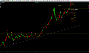 综合而言:因为日线和4小时目前的多头走势,大幅度回撤做多的概率较小;只能去参与追多行情或者等见顶信号的出现。而追多走势目前从小时线判断是4470上方,那么参与点位只能是4478-82区间。