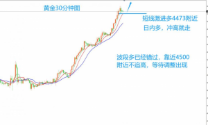 【周二操作】:黄金日内先回撤于4445-40附近做多,目标看4480-4500附近,损4430.
