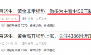 看看我最近公众号的文章标题,全部都是涨,一直在提示大家进场,进场,进场。没突破4350的时候,大标题提示黄金将突破4350,倒V大跌的时候提示上涨走势完好,提醒大家别慌,继续看涨看新高。判断的精准,来自于每天的深入分析,K线图要认真的看,看各个周期,看涨势力度,多看多做,自然产生经验,判断会越来越准。