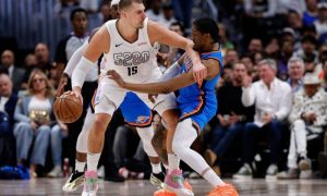 【搜狐体育战报】北京时间5月16日,2024-25赛季NBA季后赛继续半决赛的争夺,丹佛掘金主场迎来与俄克拉荷马雷霆的系列赛第6场。全场打完,掘金119-107击败雷霆,将系列赛总分改写为3-3。
