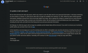 IT之家 12 月 16 日消息,科技媒体 bleepingcomputer 昨日(12 月 15 日)发布博文,报道称谷歌“关门部”出手,将于 2026 年 1 月 15 日正式停止其“暗网报告”(Dark Web Report)的监控服务,相关数据则会在 2026 年 2 月 16 日彻底下线。