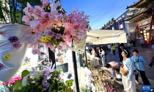 5月14日,游客在太原市钟楼街选购鲜花。 夜幕降临,太原市钟楼街、食品街等特色街区及汾河两岸流光溢彩、游人如织。近年来,太原市不断丰富夜经济消费业态,开展多种夜间活动,打造集美食、观光、购物等于一体的夜经济消费圈,丰富市民游客夜生活。